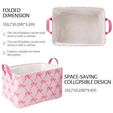 FYSUIMU 2Pcs Pink Bow Storage Basket Pink Storage Bin with Handle Large Fabric Storage Box for Home Office Organizer Decor