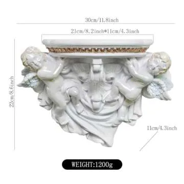 FYWMXIAJG Winged Angels Shelf Cherubs Cupid Wall art Wall Hanging Ornate Sculpture Angel Wall Decor for Collectable Figurines (White with Golden)