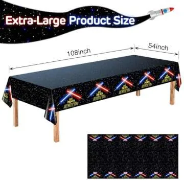 Show moreElevate your celebrations with the FZR Legend Space Tablecloth! Specifically crafted for those who dream of galaxies far away, this tablecloth features vibrant prints that include iconic Lightsabers and the phrase "MAY THE 4TH BE WITH YOU"—perfect for any space-themed gathering. Measuring an impressive 108" x 54" (9ft x 4.5ft), it's expertly designed to cover even the broadest tables, ensuring you have the space you need for all your party essentials. Made from durable, heavy-duty plastic, the table cover not only looks great but also stands up to the wear and tear of an energetic celebration, making it a fantastic addition to your decor for years to come.