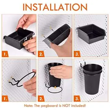 G.CORE 12 Pack Pegboard Bins PegBoard Cups with Hooks & Loops, Peg Hooks Assortment Organizer Accessory, Various Tools Storage Arrange System Kit, for Garage Craft Workshop Workbench Hobby Office