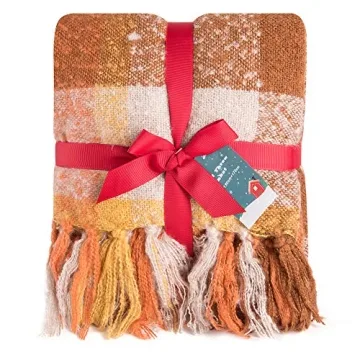 Luxury G Lake Orange Plaid Blanket - Soft, Reversible, Fringed Throw