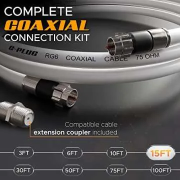 Plus, it comes as a complete coaxial connection kit. This premium-quality set includes a 75-ohm RG6 standard shield cable, brass compression connectors, a waterproof double rubber O-ring, a lead-free PVC jacket, and an easy-rotate nut for effortless installation. An extra extension coupler provides the flexibility to connect multiple cables, thus extending your reach as needed.