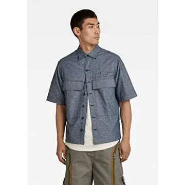 G-STAR Pocketony Short Sleeve Button Down Shirt, Nitro/White, Small