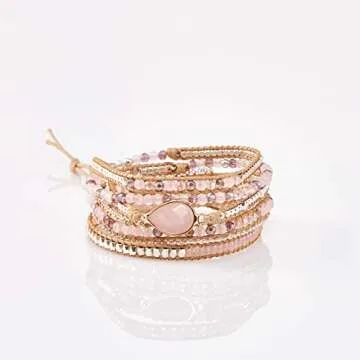 G2F DESIGN Bracelet for Women – Handmade Vegan Boho Natural Stone Layered Bracelet, Thailand Bohemian Stackable Beaded Wrap Bracelets (A2-Rose Gem)