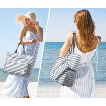G4Free Beach Bag, Waterproof Sandproof Beach Tote Bag, Large Capacity Foldable for Women, Personalized Gifts for Her,Grey Stripe