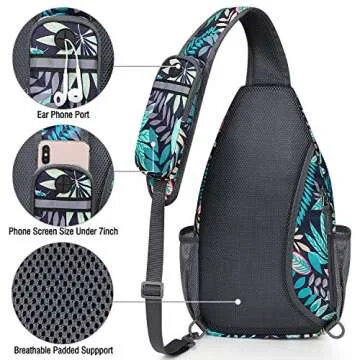 G4Free Sling Bag RFID Blocking Sling Backpack Crossbody Chest Bag Daypack for Hiking Travel(Blue Leaf)
