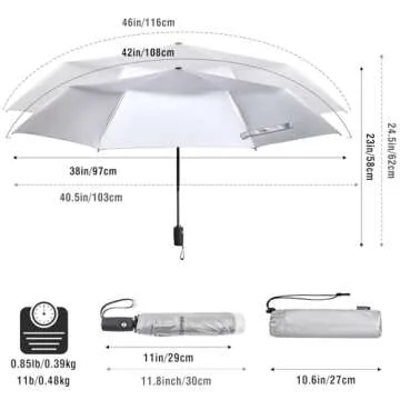 Introducing the **G4Free UPF 50+ UV Protection Large Travel Umbrella**, the ultimate companion for your travel adventures! This versatile umbrella features a generous 46-inch arc canopy, providing ample coverage for you when the weather turns unpredictable. Weighing in at only 1 lb and folding down to a compact 11.8 inches (33cm), this umbrella is designed for ultimate portability, making it a perfect fit for your briefcase, backpack, or suitcase. Whether you're hopping on and off public transport or walking...