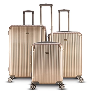 Show moreIntroducing the Gabbiano Genova Collection 3-piece Hardside Spinner Set in an elegant Champagne hue—a blend of style and functionality designed for the modern traveler. Crafted with a durable polycarbonate composite, each piece in this set boasts a fashion-forward design without compromising on strength and reliability. The ultralight construction allows you to hop from terminal to terminal easily while ensuring that your belongings remain protected. Effortlessly navigate any airport with smooth-rolling 360-degree spinner wheels, making every journey a delight. Measuring at sizes 20", 26", and 30", this expandable luggage set accommodates all your travel needs, whether it’s a weekend getaway or an extended vacation.