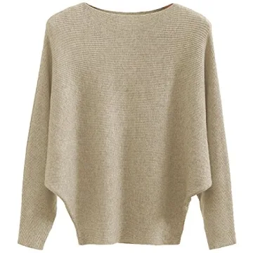 GABERLY Boat Neck Batwing Sleeves Dolman Knitted Sweaters and Pullovers Tops for Women (Khaki, One Size)