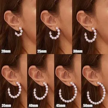 Gacimy Pearl Hoop Earrings for Women with 925 Sterling Silver Post, 5mm Thick Pearl Gold Earrings for Women, 50mm Big Pearl Earrings