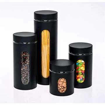 GADGETWIZ Glass Canister Set of 4 for Sugar, Matte Black Kitchen Counter Decor and Accessories