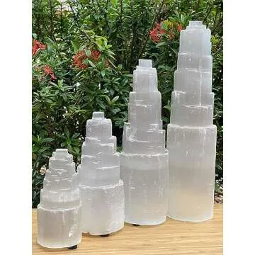 GAF TREASURES Selenite Skyscraper Lamp, 6", 8", 10", 12", 16" Tall Selenite Tower Lamp, Natural White Healing Crystal Lamp, Selenite Crystal Lamp, Pick A Size (12-13")