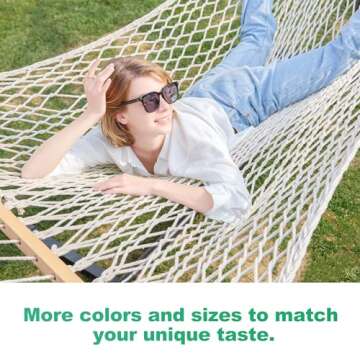 Gafete 12ft Double Hammocks, Handwoven Traditional Cotton Rope Hammock with Hardwood Spreader Bar, Chains and Hooks for Indoor Outdoor, Max 450 lbs Capacity (Beige, Full)