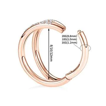 Show more Introducing the GAGABODY 16 Gauge Nose Rings – a perfect blend of elegance and versatility designed for the modern individual. Crafted out of high-quality 316L surgical steel, this double open stack hoop features stunning cubic zirconia accents, adding a touch of sparkle to any piercing. With its unique design, this septum ring can also be worn in various body piercings, including the nose, ear, conch, cartilage, tragus, rook, lip, belly, nipple, and daith. Now you can express your individuality and charm with this must-have accessory, made to fit seamlessly into your life.