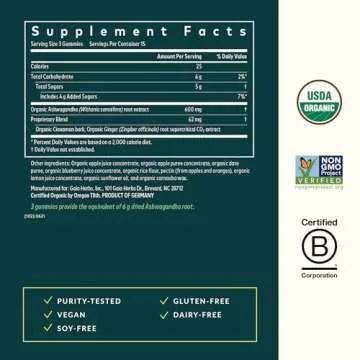 Gaia Herbs Organic Ashwagandha Gummies, Stress Support, Cinnamon, Ginger, Gluten Free, Vegan, 45 Count