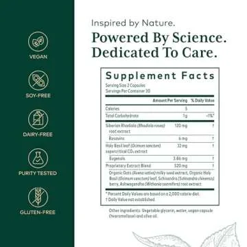 Gaia Herbs Pro Daytime HPA - Adaptogen & Nervine Supplement for Stress Support - with Ashwagandha, Holy Basil, Oats, Rhodiola & Schisandra - 120 Vegan Liquid Phyto-Capsules (60 Servings)