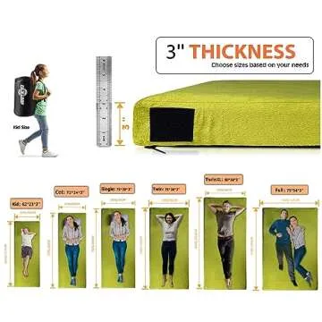 Gaialoop Thick Memory Foam Camping Mattress Sleeping Pad [Car/Tent/Cot] 3 Inch Portable Floor Play Mat Roll Up Mattress for Guests Kids Adults Sleepover Travel [Cot: 72 * 24 * 3"]