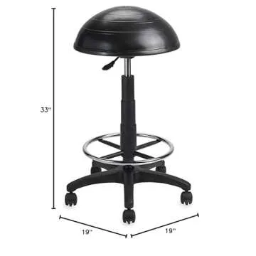 Show more Discover a revolution in seating with the Gaiam Balance Ball Chair Stool, designed to transform your workspace and enhance your posture. This half-dome inflatable cushion functions as an active seat that promotes micro-movements, engaging your core muscles while you work, resulting in improved posture and reduced discomfort. Perfectly designed for both home and office environments, this innovative stool adjusts to a height of up to 33 inches, making it compatible for standard desks and sit/stand workstations. Its sleek black color adds a modern touch to any setting, making it an ideal addition to your ergonomic work setup.