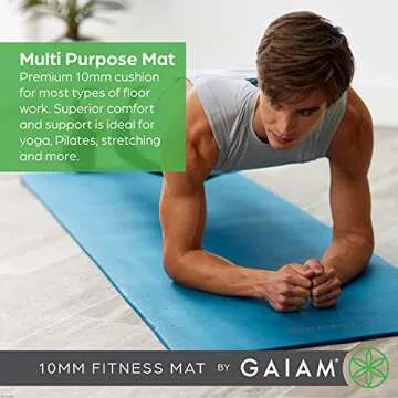Gaiam Extra-Thick Yoga Fitness Mat and Exercise Mat with Non-Slip Texture and Easy Carry Strap - Ideal for Floor Workouts and Everyday Yoga - Supportive and Portable, Black, 10mm