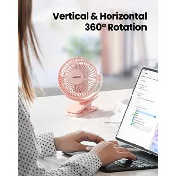 Gaiatop Portable Clip on Fan Battery Operated, Small Powerful 3 Speed Quiet 360° Rotate, USB Rechargeable Mini Personal Cooling for Desk Table Home Office Stroller Camping Pink