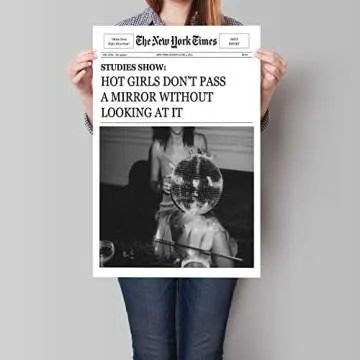GAINOW Vintage Funky The New York Times Newspaper Canvas Wall Art Trendy Black White Disco Cocktail Prints for Room Aesthetic Posters Hot Girl with Disco Ball Cool Funny Quotes 16x24in Unframed