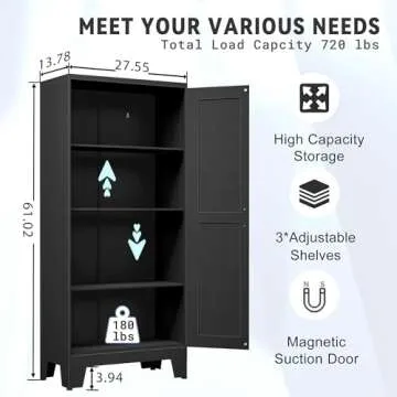 GAIOUS 61.02" Kitchen Pantry Cabinet, Kitchen Pantry Storage Cabinet with 2 Doors and Adjustable Shelves, Black Pantry Cabinet for Kitchen, Living Room, Bedroom and Dining Room (Black) Metal