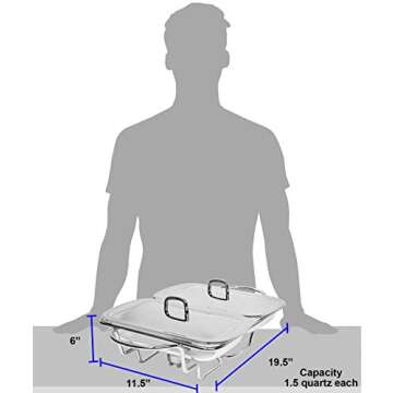 Show moreIntroducing the Galashield Chafing Dish Buffet Set, an exquisite fusion of functionality and elegance designed for effortless entertaining. This buffet server features two premium European-made glass dishes, each with a capacity of 1.5 quarts, ensuring ample space for your culinary creations. The dishes are remarkably versatile, being heat-resistant up to 500 degrees Fahrenheit for both microwave and oven use, making them perfect for a variety of cooking methods. The sleek stainless steel lids paired with a chrome-plated frame not only enhance the aesthetic appeal of your buffet setup but also ensure the food remains secure and stylishly presented.