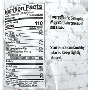 While there are several corn cake options on the market, the **Galil Thin Corn Cakes** stand out due to their commitment to being salt-free and gluten-free, catering to users with dietary restrictions. Many brands offer similar products with added salt or preservatives, whereas Galil provides a pure, simple ingredient list, emphasizing health without compromising on the crunch and taste. Coupled with their competitive pricing and convenience pack size, they are an excellent choice for anyone looking for a wholesome snack alternative.