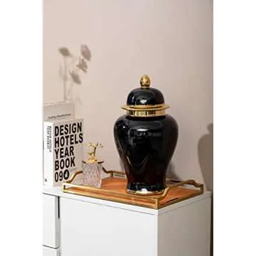 GaLouRo Black Ginger Jar with Gold Trim for Home Decor