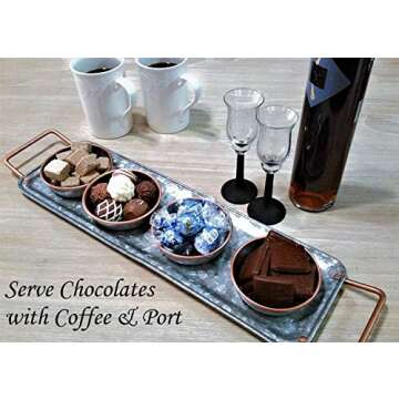In a crowded market of serving trays, the Galrose Appetizer Tray with Snack Bowls stands out due to its unique handcrafted quality and decorative appeal. Unlike ordinary plastic serving dishes, our galvanized iron tray combines durability with a chic aesthetic, enabling versatile use both indoors and outdoors. Furthermore, while competitors may offer simple trays, our set includes four rustic bowls to enhance presentation and convenience, setting a new standard for hosting.
