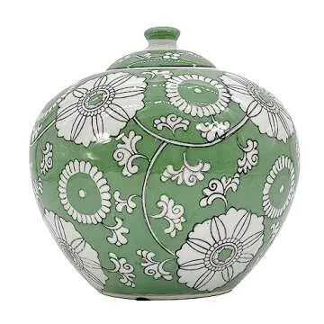 Galt International 8" Green Floral Chinoiserie Jar w/Lid Decorative Ginger Jar Centerpiece Tea Storage Candy Jar Home Decor Vase