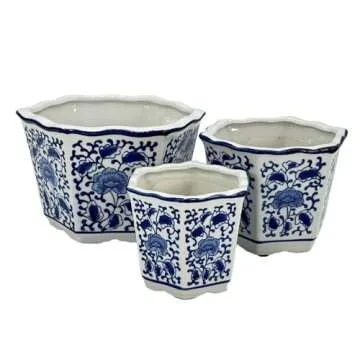 The elegant design allows these blue and white porcelain planters to effortlessly blend with any home decor theme, creating a sophisticated and cohesive look throughout your space. Gift them to your loved ones or treat yourself to this stunning set and watch as it transforms your indoor environment.