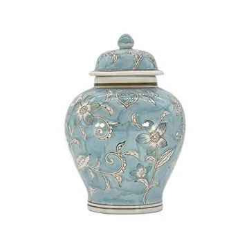 Show more Introducing the stunning Galt International Light Blue and White Flower Chinoiserie Jar, a beautiful ceramic piece that combines elegance with function. Measuring approximately 8.25" x 7.25" x 12", this ginger jar is expertly hand-painted, adding a touch of sophistication to your home. Crafted with care, it features a delightful floral motif that captures the essence of Chinoiserie design, making it not just a decorative jar, but an exquisite accent to your home décor. Elevate your space with this versatile piece that can enhance tabletops, mantles, or shelves, bringing a refreshing pop of color into any room.