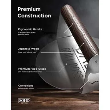 When compared to other grilling tools on the market, the GALVANOX BBQ Press stands out due to its combination of high-quality materials, ergonomic design, and multi-functionality. Other brands may offer similar products, but few can provide the same level of craftsmanship and thoughtfulness in design. The built-in bottle opener and the unique engraving make this press not just a tool, but a statement piece.
