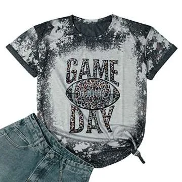 Game Day Football Shirts Women Football Graphic Tshirts Game Day Leopard Bleached Tees Vacation Short Sleeve Shirts Top