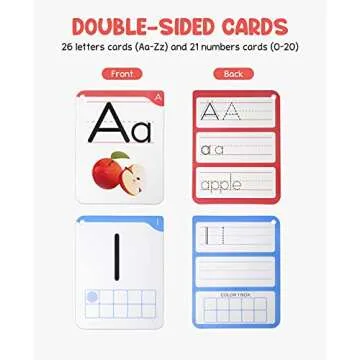 Gamenote Dry Erase Alphabet and Number Flash Cards - Write and Wipe Laminated ABC Letter Tracing Practice Card for Kindergarten (47 Flashcards with 2 Rings and Marker)