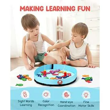 Show more Discover the magic of learning with our innovative GAMENOTE Sight Words Wooden Magnetic Fishing Game, designed to transform the way children engage with vital sight words! This captivating educational game makes reading not just a duty, but a delightful adventure. With a charming fishing pool and colorful magnetic fish presenting a variety of sight words, children can hook learning in the most fun-filled way imaginable. Crafted by GAMENOTE, a reputable brand known for its commitment to quality educational toys, this game encourages both physical coordination and cognitive development.