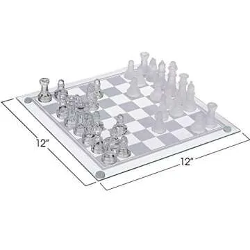 Gamie Premium Glass Chess Set, 12 Inch - Elegant Design - Durable Build - 32 Frosted and Clear Pieces - Felted Bottoms - Easy to Carry - Stable & Fully Functional for Chess Lovers