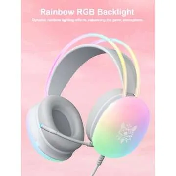 Show moreIntroducing the Gaming Headset with Microphone, your ultimate companion designed to take your gaming experience to the next level! With its stunning RGB Rainbow Lighting, this headset not only provides immersive sound but also enhances the visual appeal of your gaming setup. Perfect for avid gamers and casual users alike, the dynamic lighting effects bring an enchanting atmosphere to every game or movie night. The headset features 7.1 Surround Sound powered by a 50mm high-precision magnetic neodymium driver, delivering rich audio quality that truly brings your environments to life. Experience the difference as the 3D sound quality wraps around you, elevating your enjoyment in every audio-visual encounter.