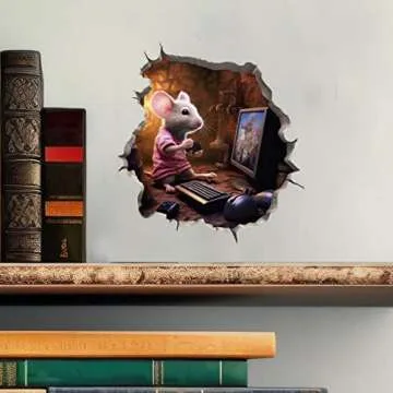 Gaming Mouse in Mouse Hole Decal - Mouse Hole 3D Wall Sticker