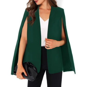 GAMISOTE Women’s Cape Blazer - Chic Split Sleeve Open Front Jacket in Green
