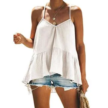 GAMISOTE Womens Spaghetti Strap Loose Tops Halter V Neck Peplum Flowy Shirts Tunics