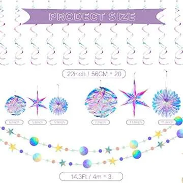Ganory 29 Pieces Home Iridescent Party Supplies Kit with Hanging Honeycomb Ball Decorative Paper Fan Snowflake Garlands White Star Hanging Swirl Decorations for Birthday Wedding Party Decorations
