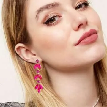 GAOKOXI Hot Pink Wedding Rhinestone Dangle Earrings Elegant Bridal Crystal Drop Earrings for Women Bridesmaids Guest Party Valentine's Day