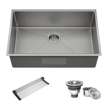 Show moreElevate your kitchen with the Gaomasck 30” Undermount Kitchen Sink, a masterpiece of design and functionality. Handcrafted from high-quality S304 stainless steel, this sink is built to last, offering unparalleled durability, corrosion resistance, and a sleek finish that won't fade over time. Its undermount design ensures a seamless look, while the sloped bottom and X-shaped guide lines promote efficient drainage. The sound-deadening material minimizes noise, making your kitchen quieter. With a spacious 28*15*8” bowl, this sink is perfect for handling large items with ease. The included basket strainer, drying rack, and mounting hardware make installation a breeze. Gaomasck stands behind its product with a long-term quality assurance, ensuring your satisfaction.