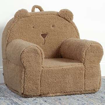 Show moreIntroducing the adorable BabyGap Delta Children Sherpa Chair, the perfect seating solution designed for your little ones! This charming chair not only enhances the aesthetic of your child's room but also provides a cozy nook where they can relax, read, or watch their favorite shows. Crafted with the utmost attention to detail, it features a super-soft sherpa slipcover adorned with an embroidered bear face that instantly captures the hearts of children and parents alike. GREENGUARD GOLD CERTIFIED, this chair is thoroughly tested for over 10,000 chemicals and VOCs, ensuring a safer environment for your child and contributing to cleaner indoor air. Versatile and Practical, the chair’s lightweight structure allows your child to easily move it from room to room during their play sessions.
