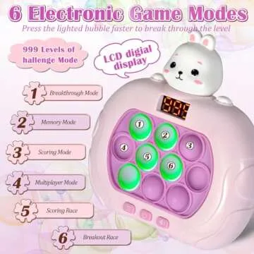 GAPER GO Fast Push Game Fidget Toys for Kids, Handheld Puzzle Game Sensory Toys, Quick Push Light Up Pop Game Gifts for 3-12 Year Old Boys Girls, Easter Basket Stuffers (Rabbit)