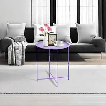 Garden 4 you End Table Outdoor Side Table, Small Patio Table Metal Side Table, Round Folding Side Table, for Outdoor and Living Room,Purple