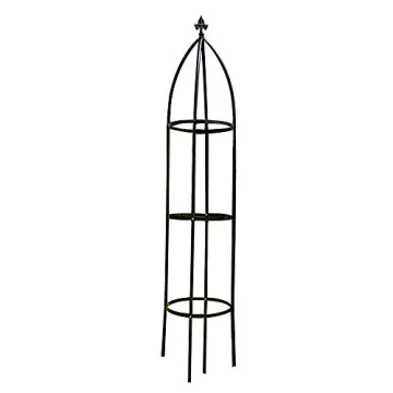 Show moreTransform your outdoor space into a stunning floral haven with this 6.2 feet tall garden trellis. Perfectly designed to provide sturdy support for flowering vines, vegetables, and other climbing plants, this garden accessory is not just functional, but serves as an eye-catching focal point in any garden. The obelisk design adds a dramatic height, enhancing the visual interest of your garden and inviting a medley of color and fragrance that uplifts your outdoor ambiance. Made from high-quality metal tubing and coated with weather-resistant epoxy, this trellis promises durability and longevity, standing tall through varying weather conditions.
