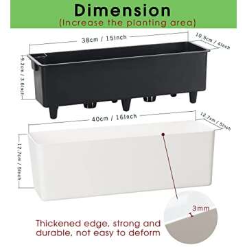 GardenBasix Elongated Self Watering Planter Pots Window Box 5.5 x 16 inch Indoor Home Garden Modern Decorative Planter Pot for All House Plants Flowers Herbs (White,1-Pack)